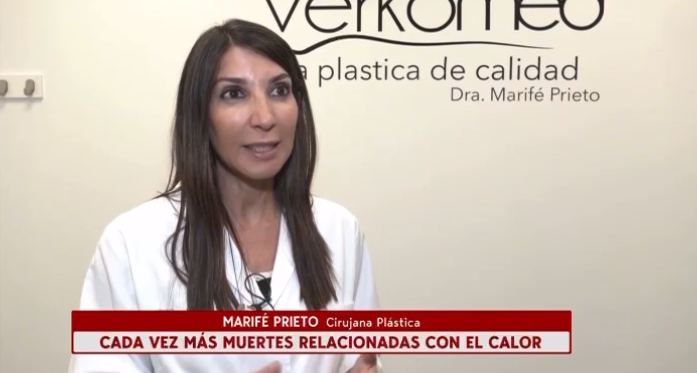 Esta semana, la Dra. Prieto ha sido entrevistada en Noticias 4 para hablar precisamente de este tema y advertir sobre los peligros que conlleva no protegerse adecuadamente y de la incidencia del sol en el envejecimiento prematuro de la piel. La Dra. señala que “La alteración de la elastina y el colágeno va a relacionarse con una piel más envejecida”.